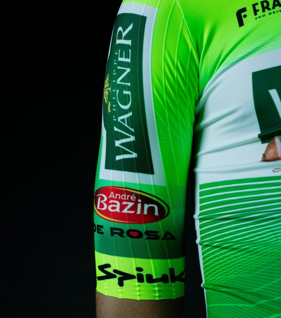 L’équipe Wagner-Bazin WB hisse ses couleurs pour la saison 2025. Son maillot présente une déclinaison de vert et des touches de jaune, des lignes superposées comme autant de ponts entre les deux équipes fusionnées. La campagne 2025 sera colorée, riche en émotions et en audace, fidèle au goût de la performance !